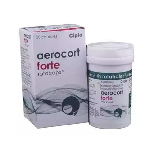 Buy Aerocort Forte Rotacaps relieves asthma by relaxing airway muscles. For successful control, follow the directions exactly; maximal efficacy takes several weeks. Do not discontinue usage, and utilize a quick-relief inhaler during attacks.