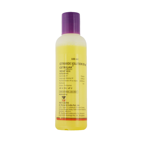 Cetrilak Mild Solution is a liquid antibacterial containing cetrimide that is used to clean wounds and treat skin rashes, scrapes, grazes, and small burns while also supporting healing and calming skin disorders.