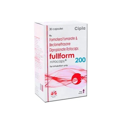 Fullform Rotacaps 200 mcg contains two different drugs intended to function in concert to relax and enlarge the air passageways in the lungs. This action makes breathing simpler and more comfortable for those with respiratory disorders.