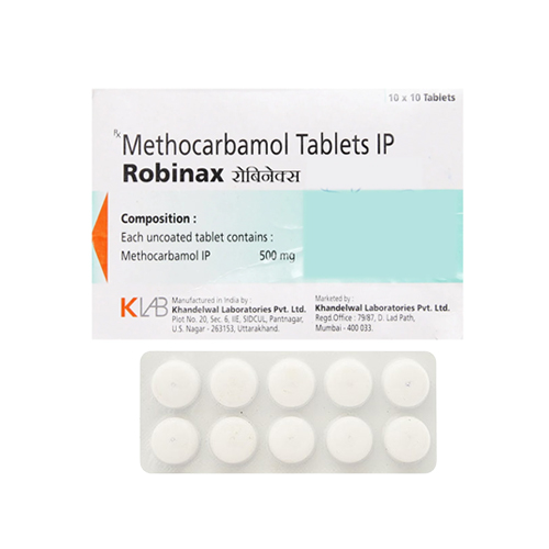 Robinax 500 Mg helps to relax muscles, relieving painful spasms and skeletal muscular stiffness, tension, and rigidity brought on by a variety of nervous system disorders.