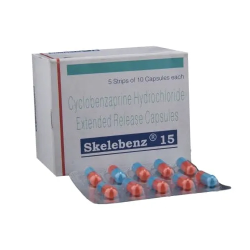 Skelebenz 15 Mg Capsule is a skeletal muscle relaxant for relieving muscle spasms from acute musculoskeletal conditions, used with rest and physical therapy.